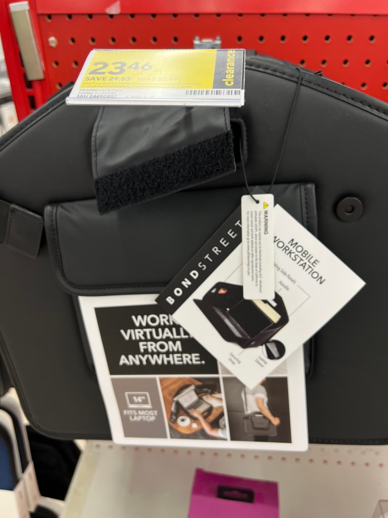 Like this mobile work station, which is on sale for half off. It’s sort of a combination laptop bag, file folder and portable desk. And it’s got a way to carry it all.