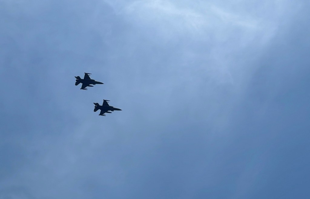 Two F-16s fly the South Carolina coast.