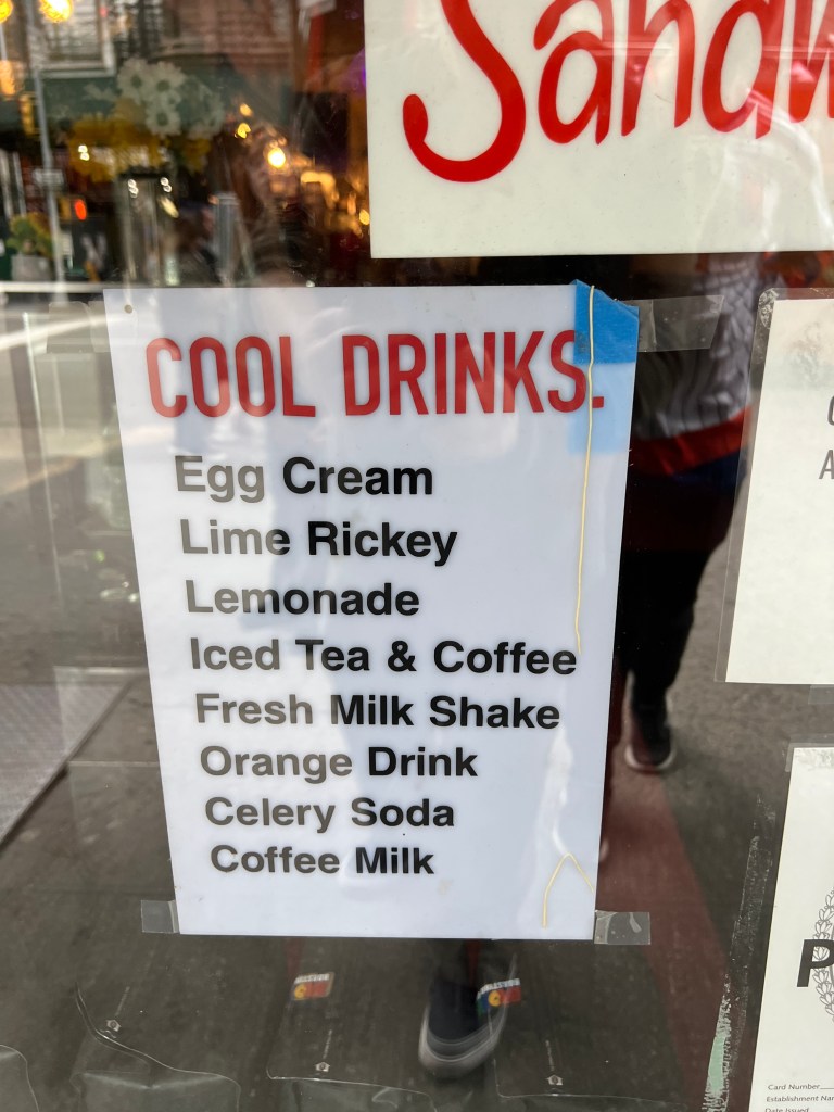 I was near 23rd Street and I couldn’t resist stopping by one of my haunts from my Chelsea days, Eisenberg’s, where they have been making egg creams and lime rickey’s since 1920. I couldn’t decide between an egg creams or a cherry lime rickey, and went with the latter.